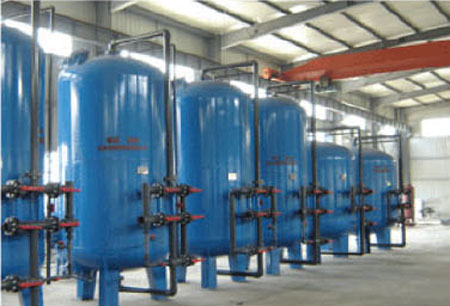 双流式机械过滤器的滤料的进水分为两路,一路是由滤料上部进入,另一路由滤料下部进入,过滤后的出水由中部排水装置排出,中排装置设在距滤料表面的70cm滤料层中。