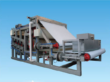 通过带式压滤机上一系列的辊及滚筒,将上下两层滤带上的污泥在剪力的作用下,污泥中的游离水不断被挤出,从而完成泥水分离过程。