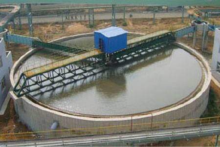 本机型多用于大直径的辅流式沉淀池的机械刮泥,为双周边驱动,中心支墩式。上部设有浮渣收集装置,采用中心配水,利用液位差自吸式排泥。